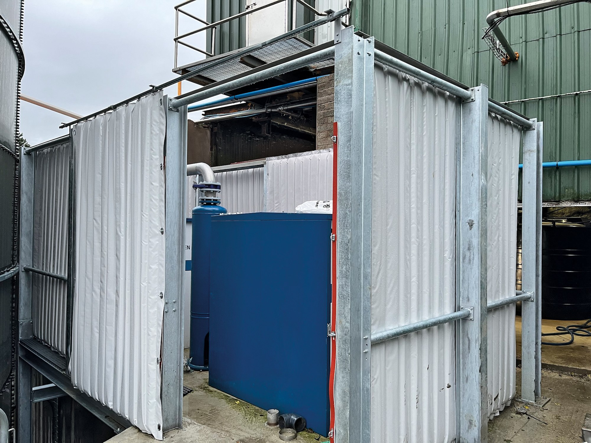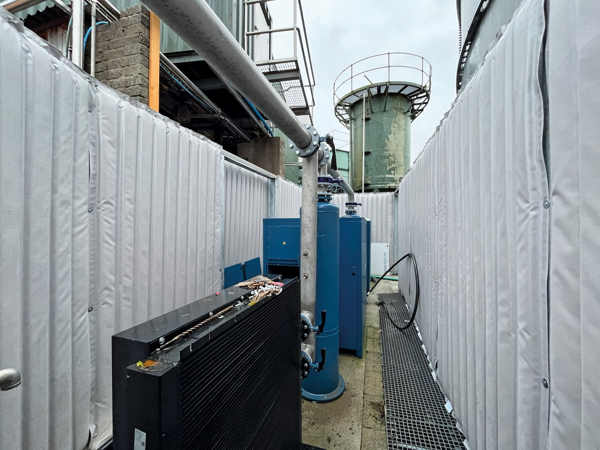 The enclosure of the cooling system with partially movable Cisilent Type E works as intended and allows easy access to the plant for maintenance. Cisilent‘s unique textile structure made of high-strength polyester fabric ensures resistance to water, ozone, UV radiation and microorganisms and protects against contamination.