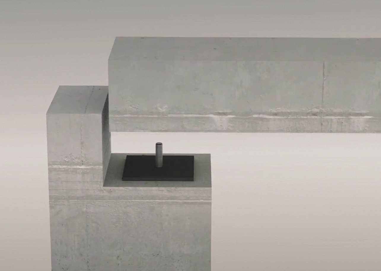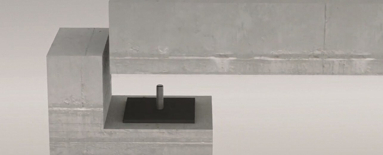 The structural engineering foresaw lean, vertical and extremely strong steel columns, which were to remain visible as a design element. Calenberg S 65 compact bearings were used in order to induce the loads as centrally as possible. In addition to load centring, the unreinforced S 65 compact bearings are also responsible for the absorption of unevenness and tolerances while at the same time absorbing shear deformations of the supported construction.