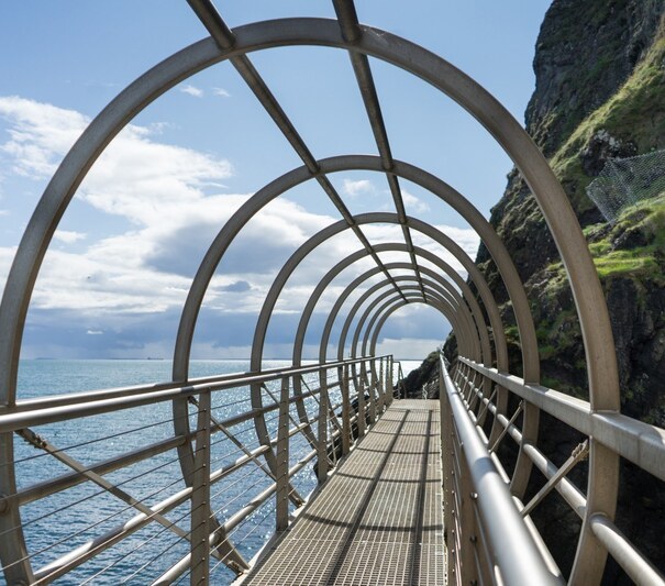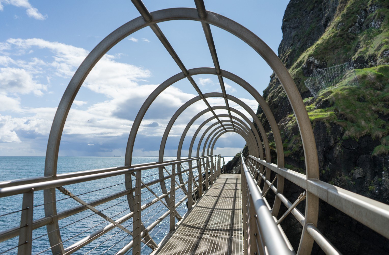 „The Gobbins“ was originally created by an Irish railway engineer called Berkeley Deane Wise in 1902. The path was designed to attract tourists to experience the variety of rocks, birds and animals along the Gobbins cliffs.This was achieved with over 20 footbridges placed along the cliffs. However, in 1954 the path was officially closed and decayed. In 2011-2015 a project was starte to restore and reopen the cliff path.