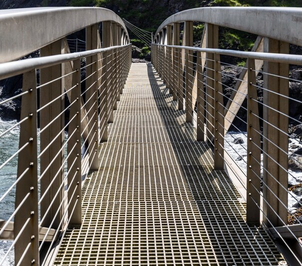 In cooperation with our partner company SDG, Calenberg was able to design and implement its Civalit and Ciparall sliding bearings for the pedestrian bridges. These bearings absorb the movements, loads and rotations caused by the rough weather and the visitors and transfer them to the foundations, as well as the temperaturerelated length changes of the bridge steel structures.They work reliably despite the most adverse weather conditions and salty spray. The installation of our sliding bearings in the bridge structures was realised in mid 2015.