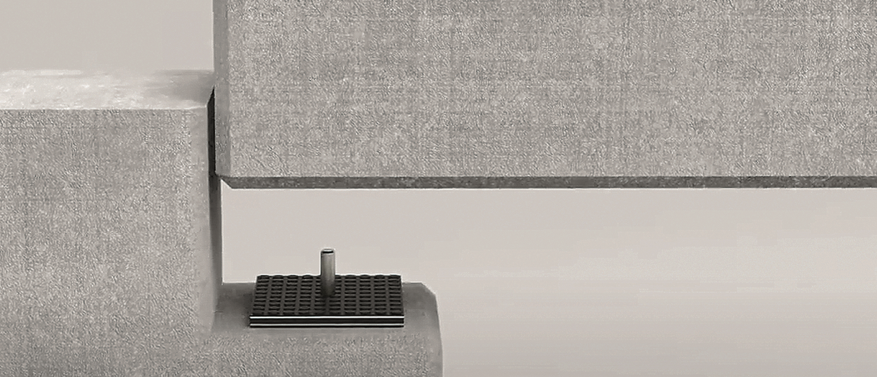 The bearings of the precast elements and the steel construction were executed with various Calenberg products. Building authority-approved static bearings were predominantly used, such as the S 65 compact bearing and the perforated bearing type Z for load centring. In addition, larger movements are enabled as planned by means of the Civalit sliding bearing system. Linear load transfer to supports was implemented with the likewise building authority-approved bi-Trapez bearings from Calenberg.