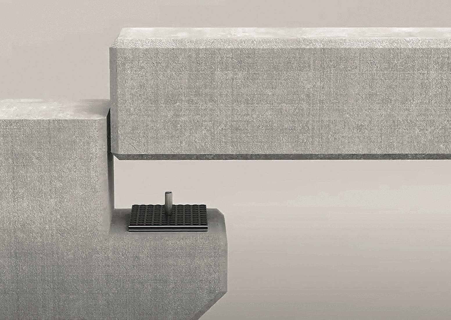 Due to the high compressive stresses resulting from the cramped spatial conditions, a solution with steel-reinforced elastomer bearings from Calenberg was the only one considered. In addition, these needed to have an adequate thickness in order to prevent resting of the adjoining beams located above due to the high angle of rotation, as this leads to spalling in the element located below. The Q sandwich bearing was deemed to be suitable for this and was installed. In addition, bi-Trapez bearings are installed in the Reichstag for impact sound insulation and vibration protection.
